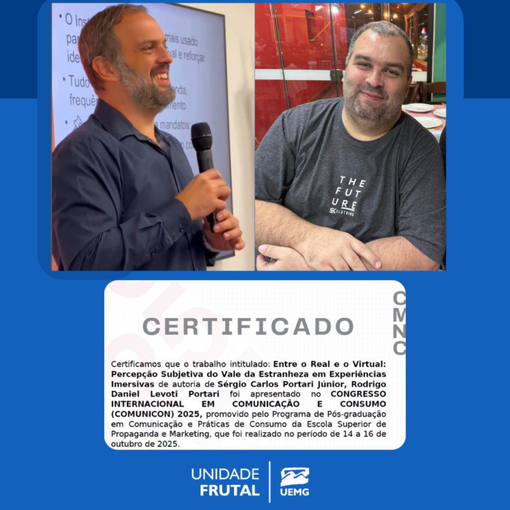 A participação dos professores no evento reforça o compromisso da UEMG/Frutal com a produção científica e a inserção acadêmica em debates internacionais, destacando o papel da instituição na reflexão sobre as transformações tecnológicas e comunicacionais da atualidade.